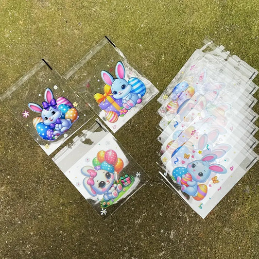 SACHET CADEAU MOTIF LAPIN ET OEUFS DE PAQUES