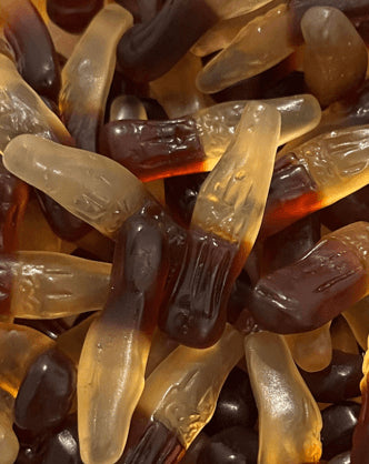 Bonbon lisse en forme de bouteille de Coca, marron, avec une saveur de coca.