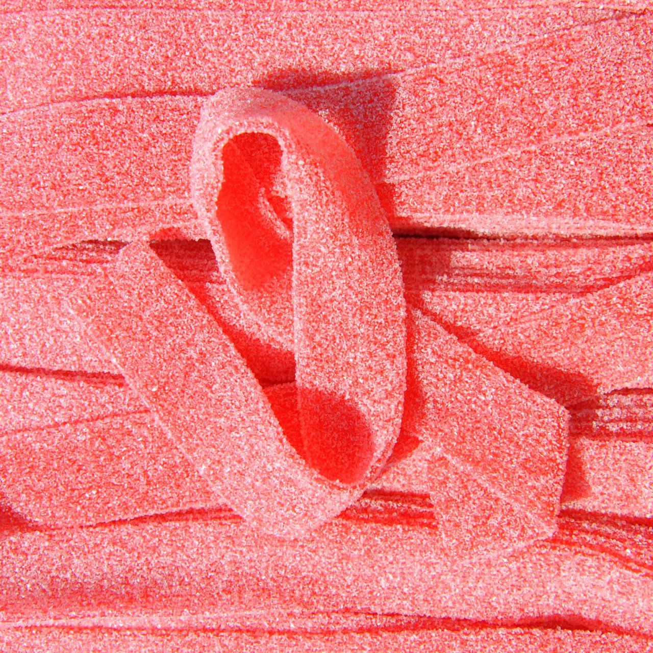Bonbon acide en forme de ruban, rose, avec une saveur de fraise