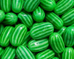 Chewing gum acide en forme de pasteque, vert, avec une saveur de melon
