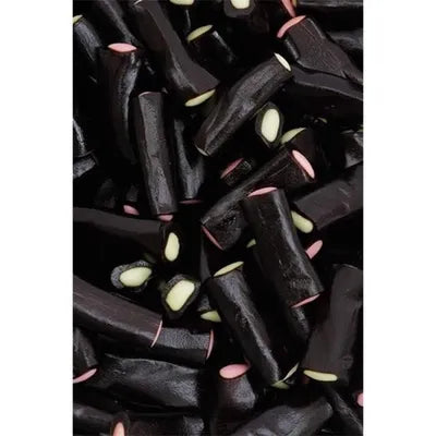 Bonbon lisse en forme de câble fourré, noir, avec une saveur de réglisse