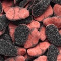 Bonbon sucré en forme de moules, rose et noir, avec une saveur de fruit épicé