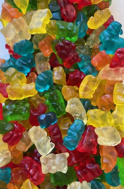 Bonbon lisse en forme d’ourson, multi couleur, avec une saveur fruit.