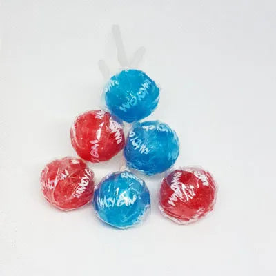 Sucette fourrée de chewing gum et couvert de poudre effervescente, avec une saveur de cerise et de coca.
