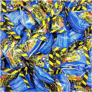 INGRÉDIENTS : sirop de glucose, sucre, acidifiant : acide citrique, correcteur d’acidité : citrates de sodium, arôme naturel, colorant : bleu brillant FCF,
