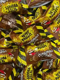 Bonbon acide en forme de bille, marron, avec une saveur de coca