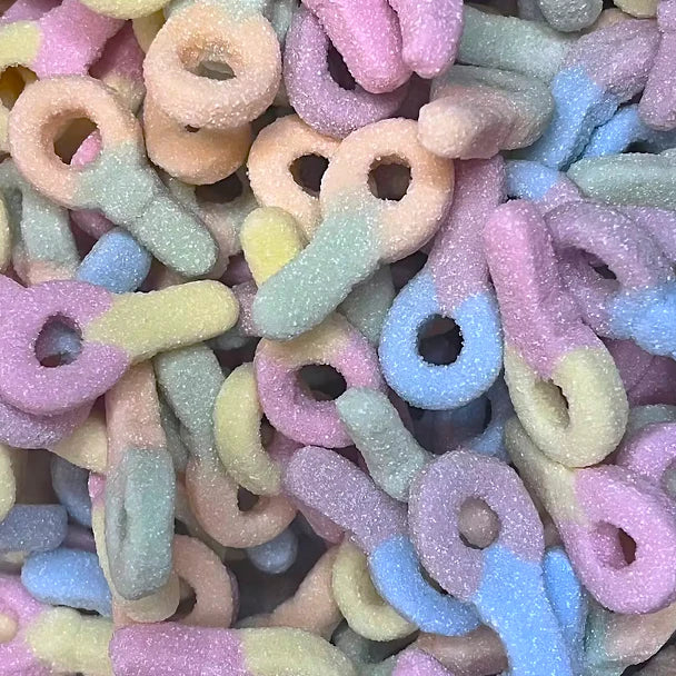 Bonbon acide en forme de tétine mousseuse, multicolore avec une saveur de fruit